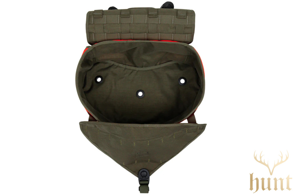 Az alsó vízelvezető nyílásoknak köszönhetően a tarisznya könnyen tisztítható, a nedvesség gyorsan ki tud folyni, így a belső rész szárazabb marad, és kevésbé alakul ki kellemetlen szag. A belső rekesz kialakítása megkönnyíti a vad gyors behelyezését és kivételét, a csendes, lehajtható zárófül pedig halk és gyors hozzáférést biztosít – akkor is, amikor minden nesz számít.